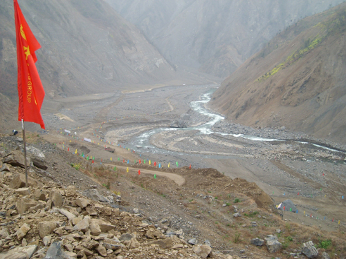 通過設計單位的多方論證、精心設計,編制了綜合整治方案,并啟動了唐家山堰塞湖后期處置工程一期明渠工程。中成集團總裁董倫輝介紹,目前一期工程預計要處理三十多萬方土石,如果加上隨時下滑的泥石流的話,一期工程中預計將移動土石方54萬立方米。為了確保今年防洪度汛安全得到保障,中成集團動用一百多臺大型設備進行24小時作業,確保一期工程將于4月30前完成。